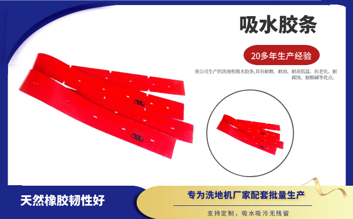 產(chǎn)品說明:吸水膠條是洗地機(jī)吸水扒上的重要部件,作用就是與地面接觸,產(chǎn)生一個(gè)密封的空間,把地面上的污水通過風(fēng)機(jī)進(jìn)行回收。吸水膠條一般分為耐油型(進(jìn)口PU原料)和普通型(進(jìn)口NR原料)兩種。